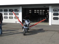 Nach einer längeren Pause ging es mit dem Schräglagentrainer weiter. Jeder konnte einmal auf diesem speziellen Motorrad versuchen so tief wie möglich die Maschine (SV 650) in die Kurve zu legen. Die Übung wurde auf dem Gelände vom Fahrerlager I durchgeführt.